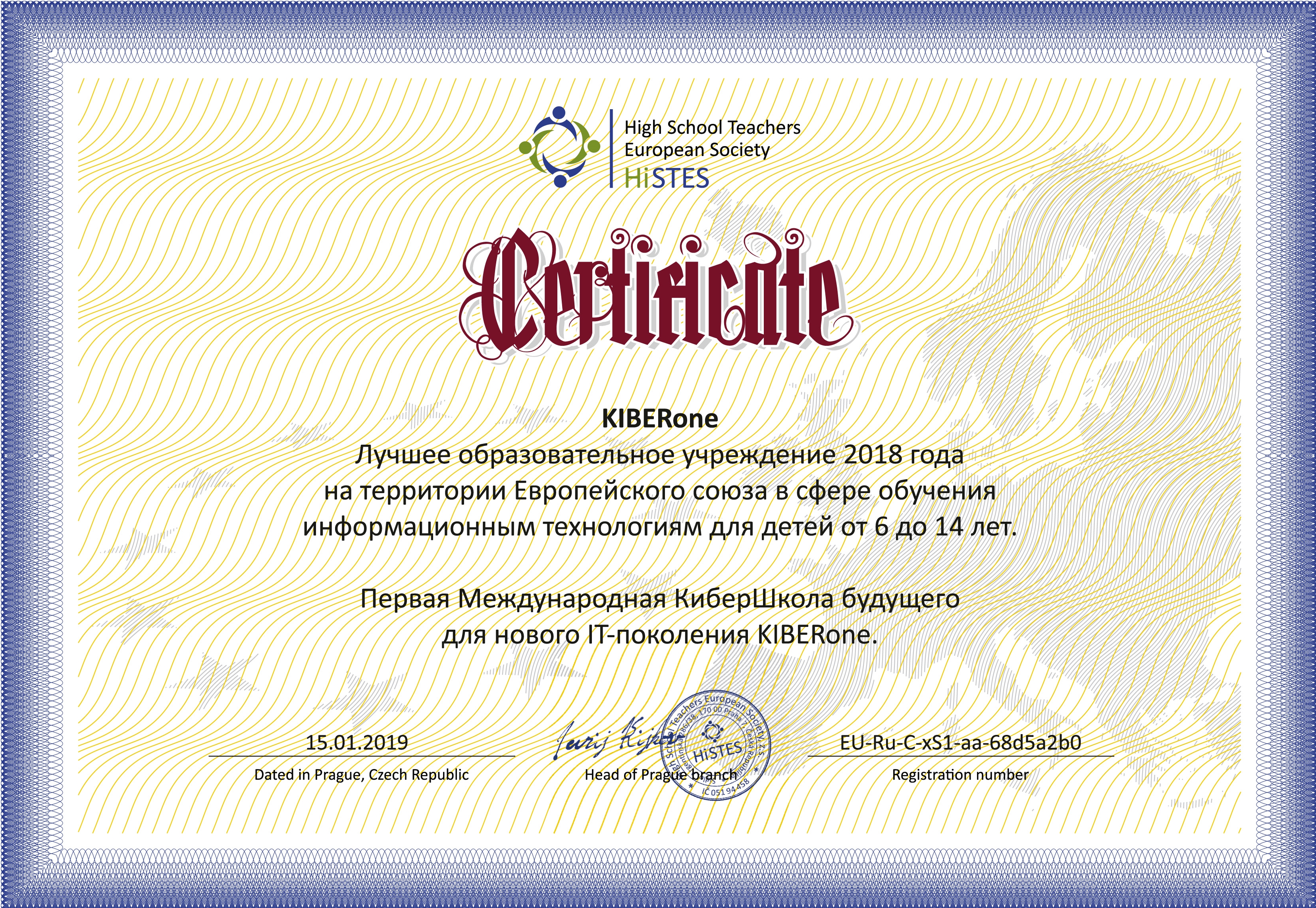 Лучшее образовательное учреждение 2018 года на территории Европейского союза в сфере обучения информационным технологиям для детей от 6 до 14 лет.